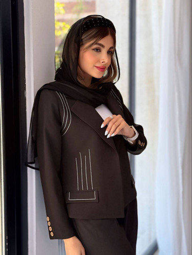 ست مانتو کت شلواری مازراتی مشکی سایزبندی از ۳۶تا۴۸طبق چارت تصویر آخر