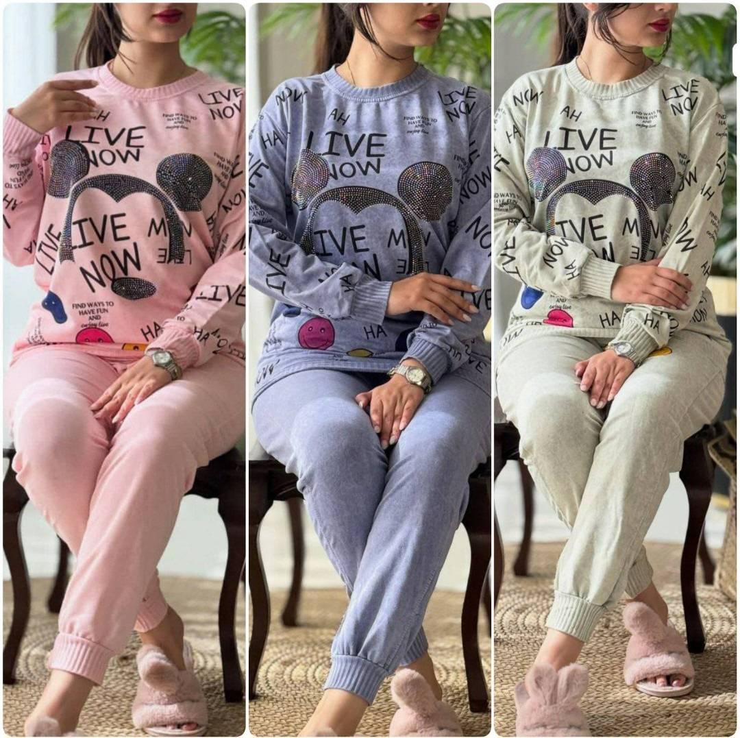 ست بلوز شلوار نگین دار شرلین فری سایز های ۳۶تا۴۸ در رنگبندی جذاب