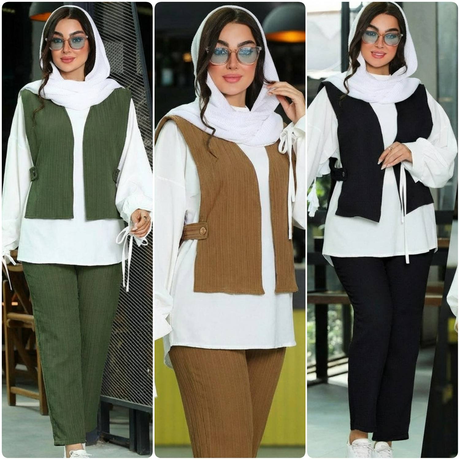ست سه تیکه شومیز، وست و شلوار باتیسا فری سایز۳۸تا۴۶ طبق توضیحات