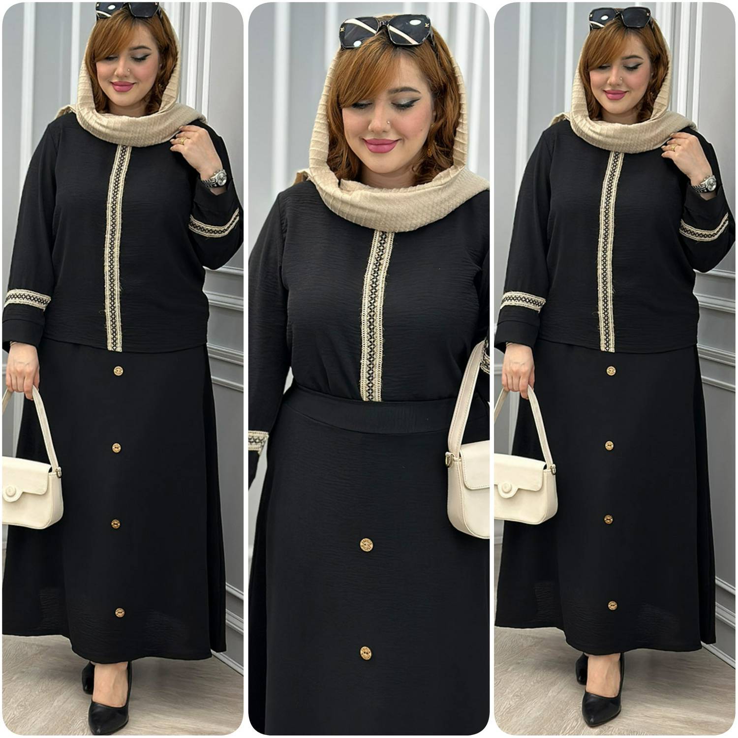ست بلوز دامن مشکی ابروبادی برلیان فری سایز ۳۸تا۴۶ طبق توضیحات