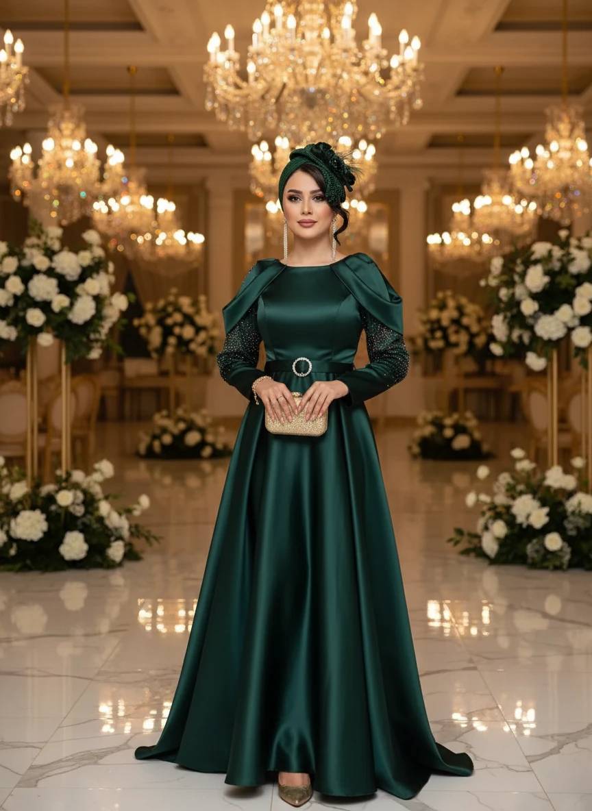 پیراهن مجلسی ماکسی ساتن آستین بلند مرسانا.سایز۳۸تا۴۸