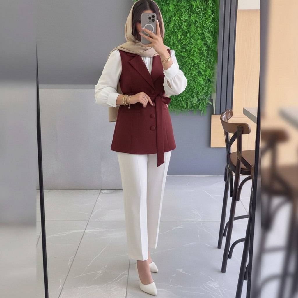 ست ۳ تیکه شومیز،وست و شلوار ثنا فری سایزتا۴۶ طبق توضیحات در ۴رنگ جذاب