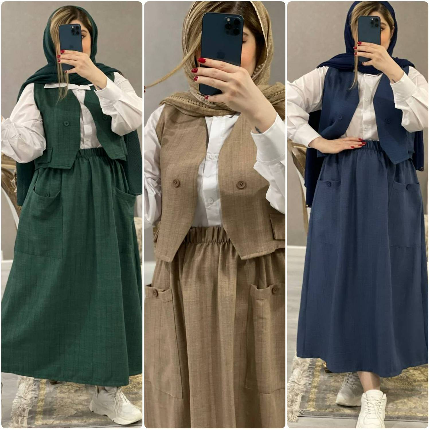 ست سه تیکه جلیقه،شومیز دامن ثریا فری سایز ۳۸ تا ۴۶ طبق توضیحات