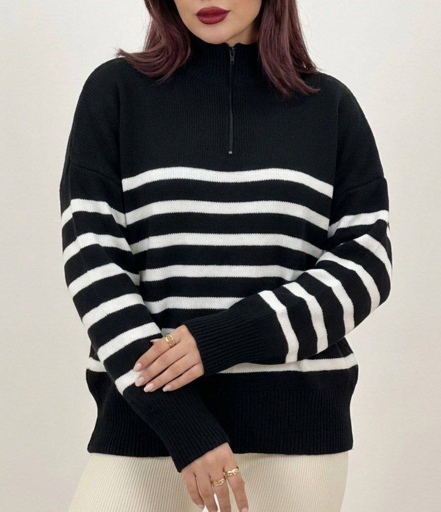 حراج بلوز بافت زیپدار راه راه.فری سایز۳۸تا۴۸طبق توضیحات