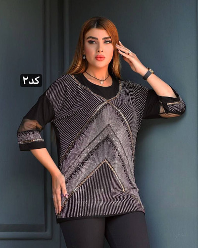 تونیک نگین دار مدل ژالین فری سایز ۴۰تا۵۲ طبق توضیحات در۶رنگ