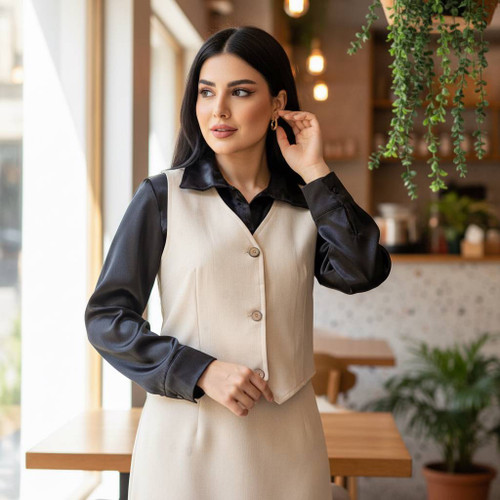 ست ۳تیکه جلیقه دامن و شومیز مرسده فری سایز۳۸تا۴۶ طبق توضیحات در رنگبندی جذاب