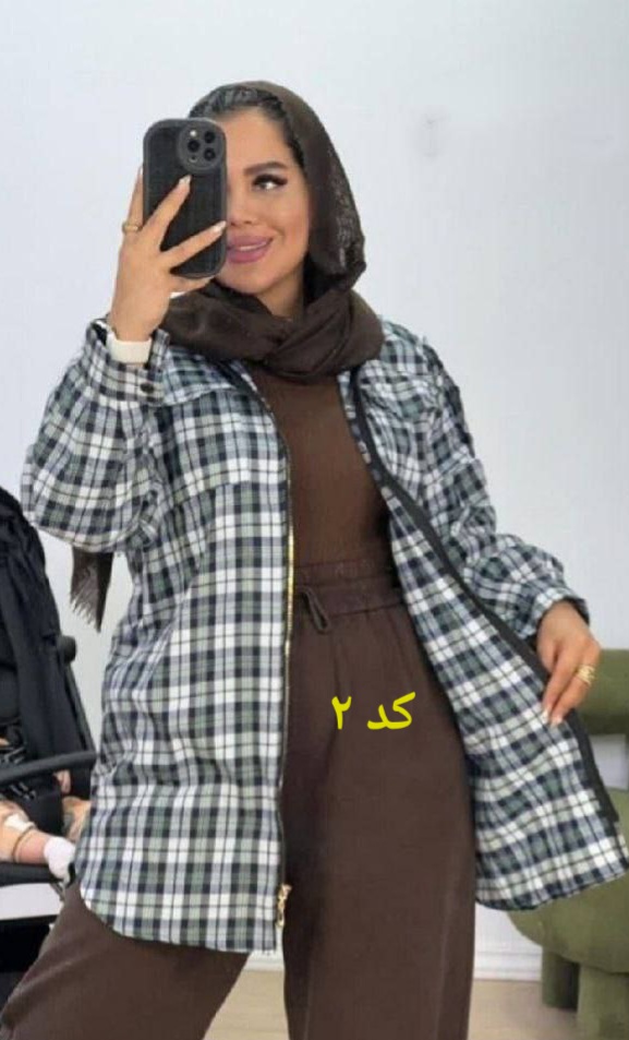 مانتو چهارخانه پشمی جلو زیپ فری تا ۴۶