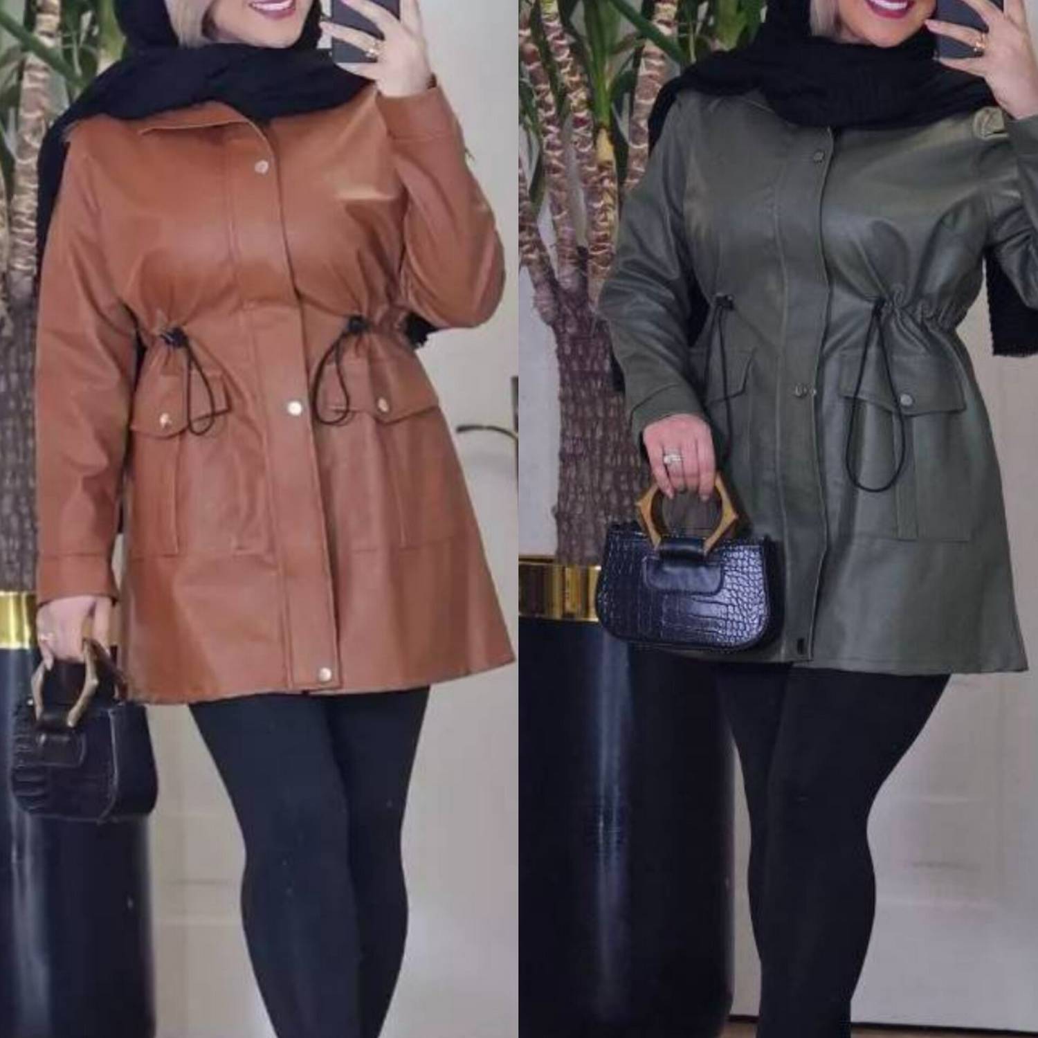 مانتو چرم کمرگت فری سایز ۳۸تا۴۸ در۴رنگ جذاب