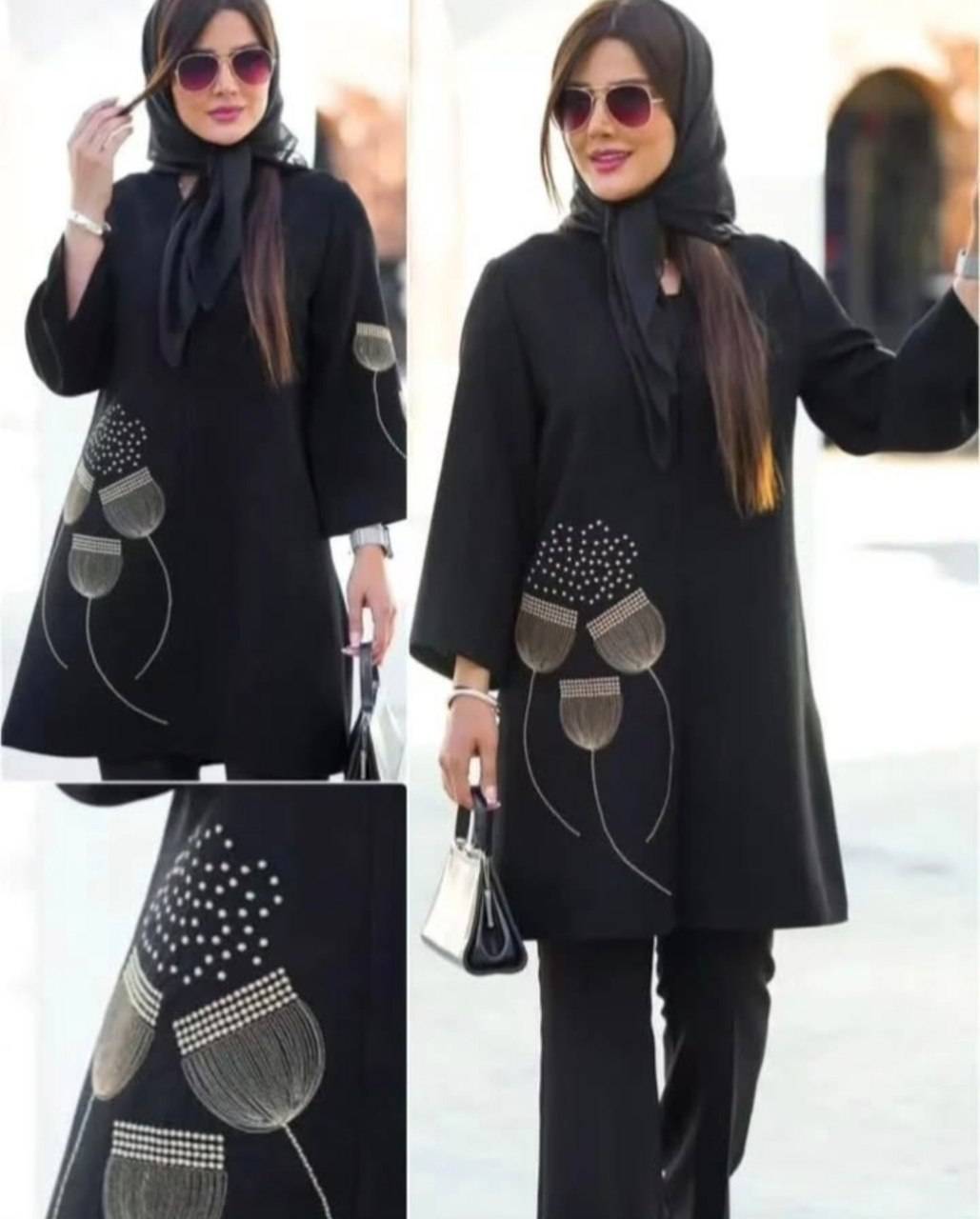 مانتو عبایی آستین مغزی دوزی فری سایز۴۰تا۵۲ در۲رنگ