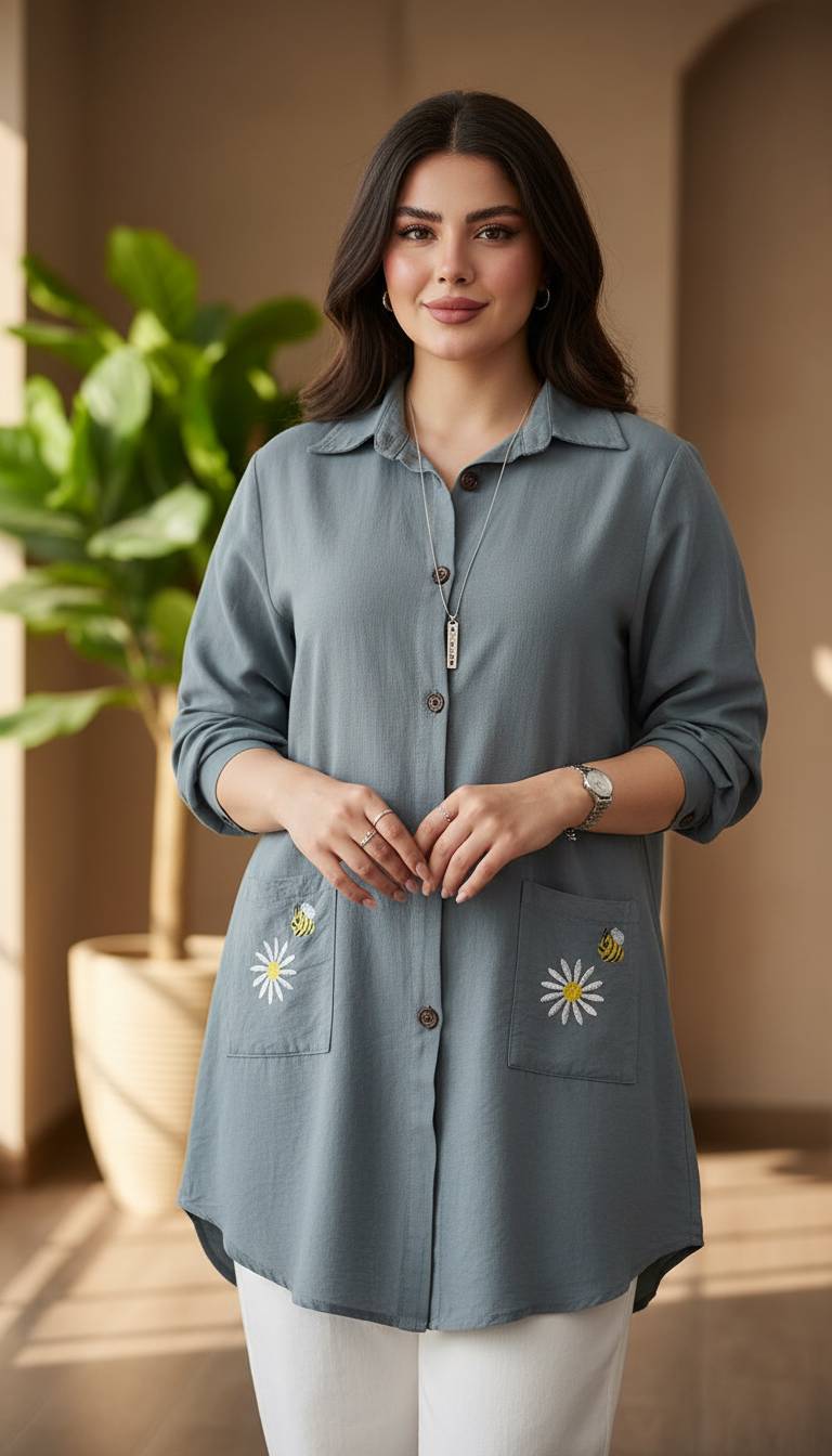 شومیز مانتویی شایلی.نیلا فری سایز۳۸تا۵۰طبق توضیحات