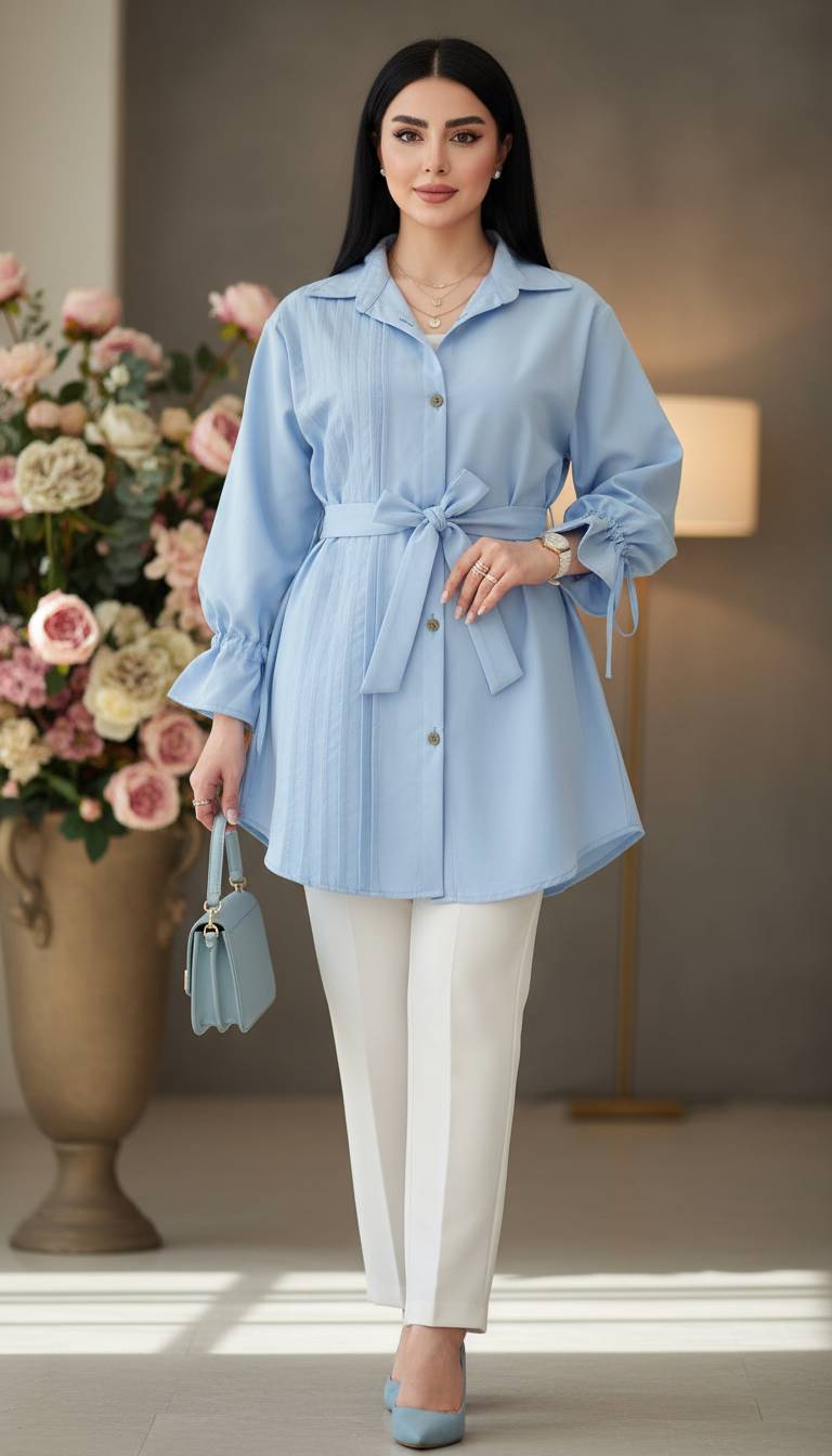 شومیز مانتویی کمر گت دار لاریس.سایزبندی از۳۸تا۴۸طبق توضیحات در رنگبندی متنوع