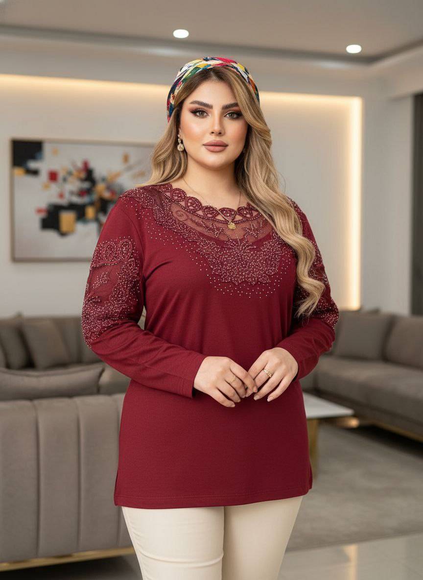 شومیز مجلسی گیپوری نگین دار گلسا فری سایز ۳۸تا۵۰