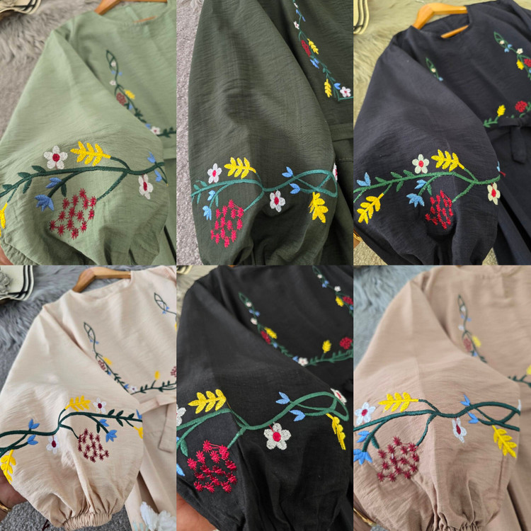 کفتان گلدوزی گلبرگ فری سایز۴۰تا۵۰ با رنگبندی جذاب