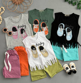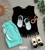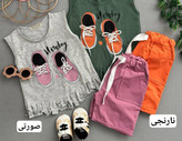 ست تاپ شلوارک مجلسی دخترانه طرح کفش.سایزبندی از۱تا۴ طبق توضیحات. در۴رنگ جذاب