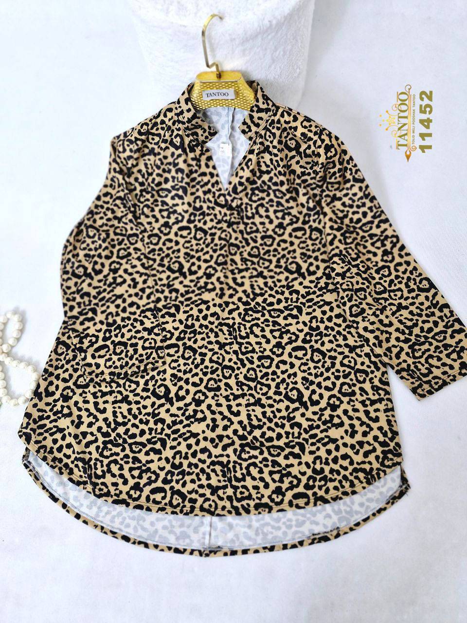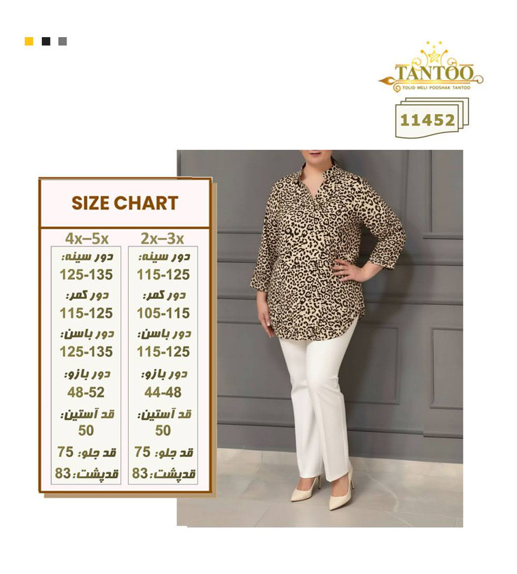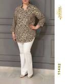 بلوز یقه ایستاده پلنگی سایزبزرگ.سایزبندی از۵۰تا۶۰