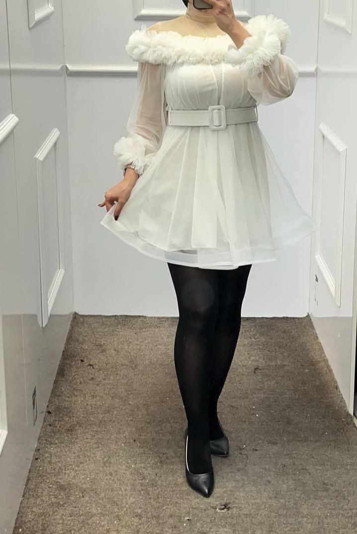 پیراهن مجلسی عروسکی یقه قایقی فری سایز۳۶ تا۴۲ در رنگبندی زیبا