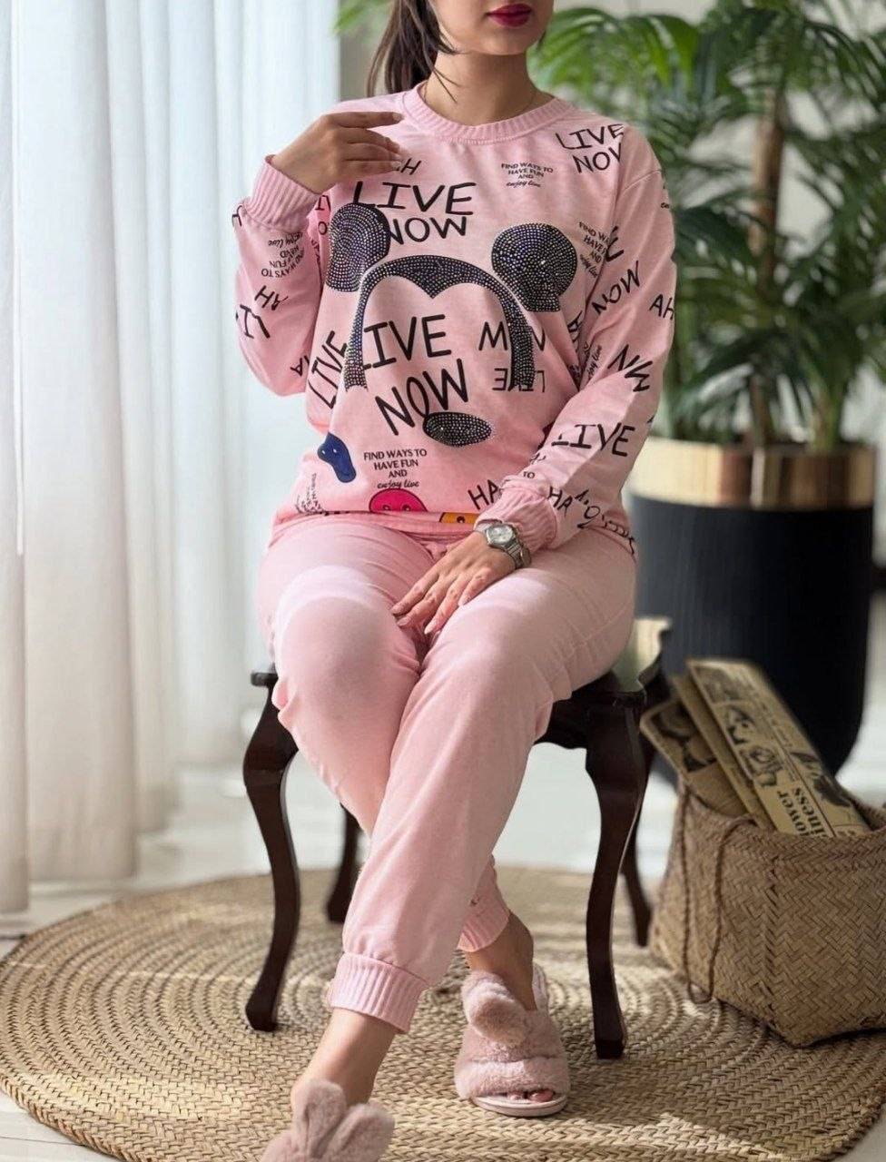 ست بلوز شلوار نگین دار شرلین فری سایز های ۳۶تا۴۸ در رنگبندی جذاب