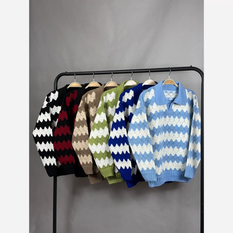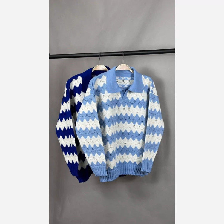 جین 6تایی بلوز بافت یقه دار راه راه موجی