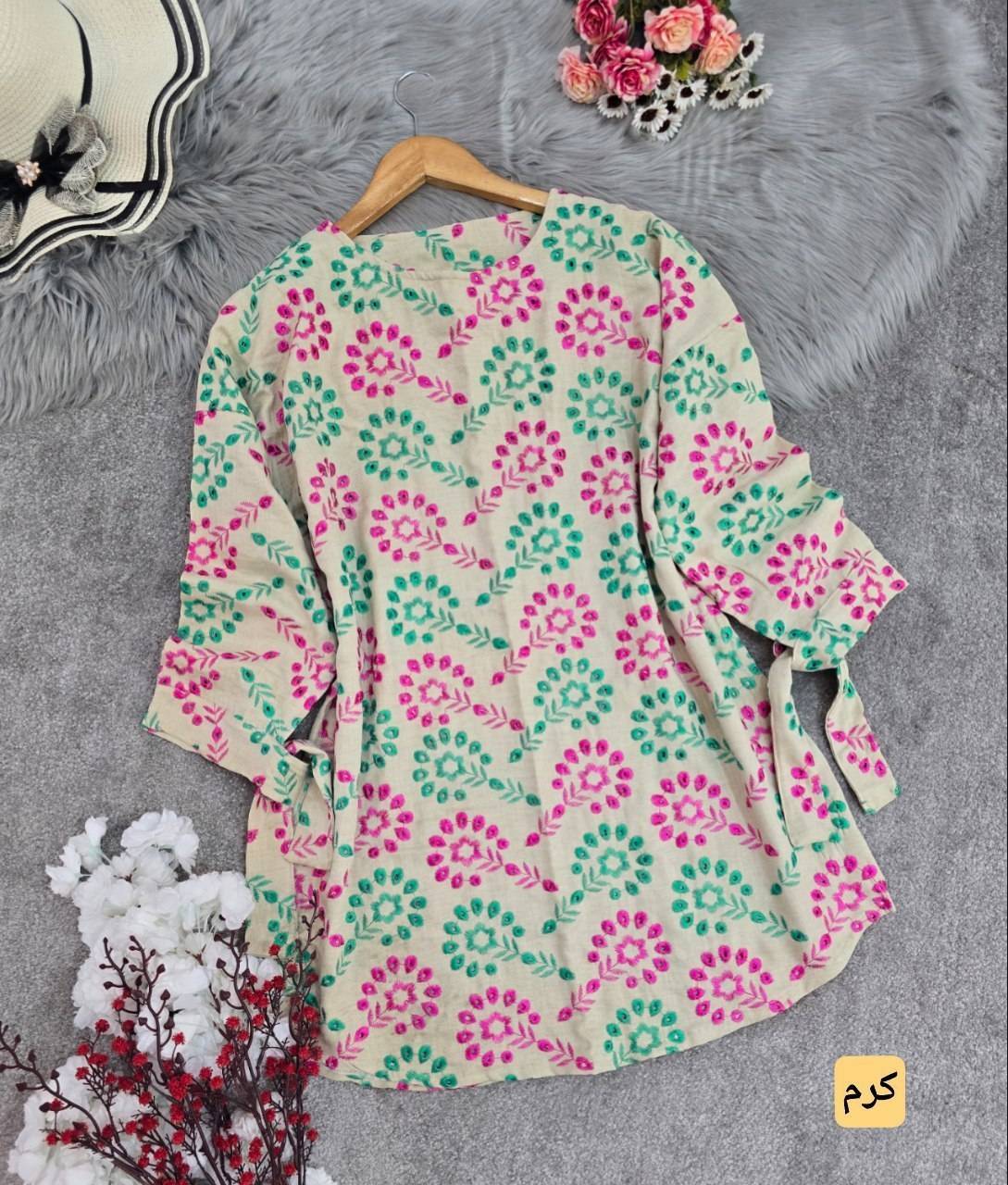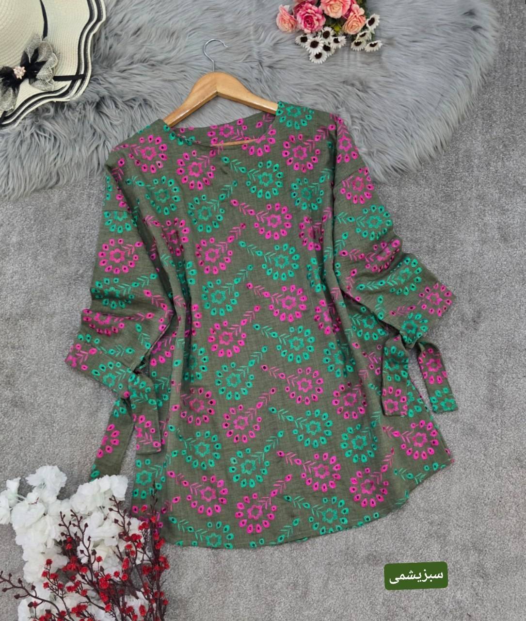 شومیز خامه دوزی شده خنک فری سایز ۴۰تا۵۰ طبق توضیحات در رنگبندی جذاب