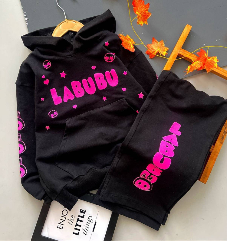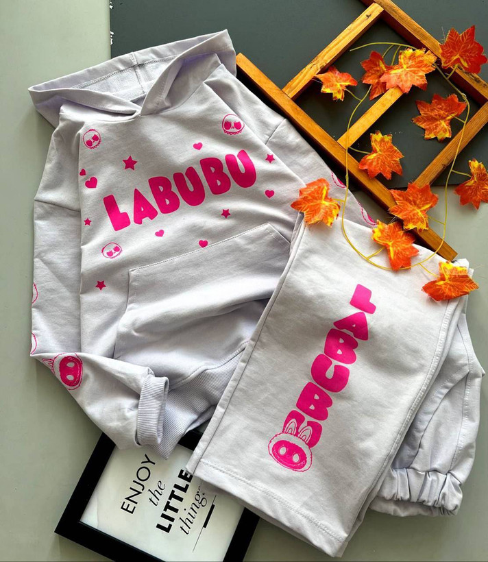 ست بلوز شلوار دورس کلاهدار لبولبو دخترانه سایزبندی از ۳۵تا۵۰ طبق توضیحات
