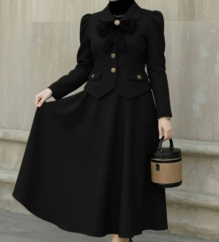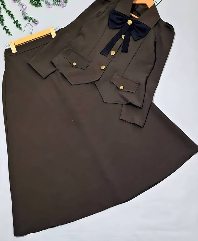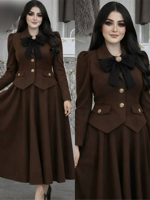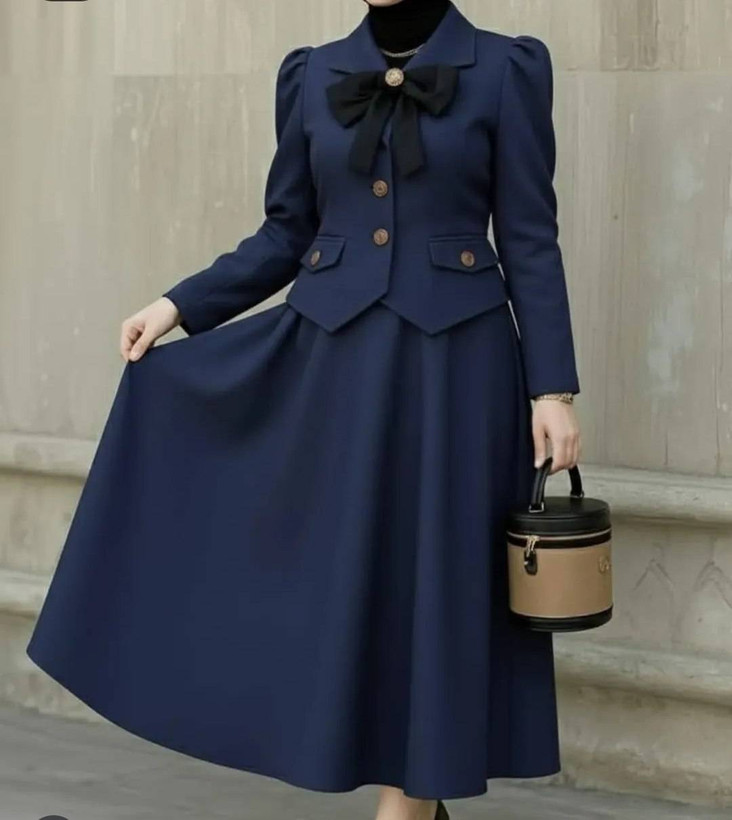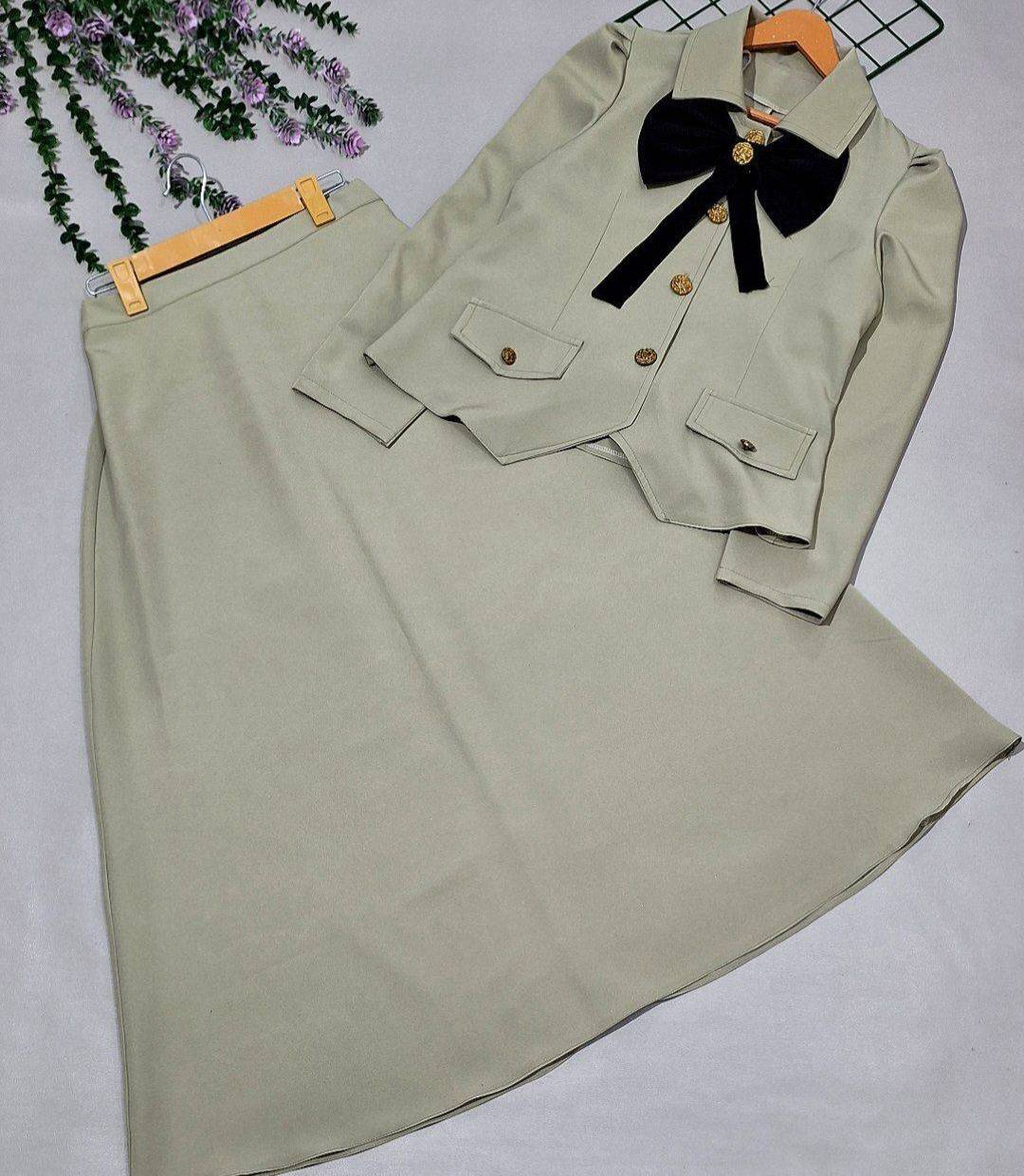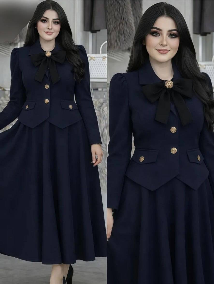 ست سه تیکه کت،دامن و پاییون فری سایز ۳۸تا۴۶طبق توضیحات در رنگبندی جذاب