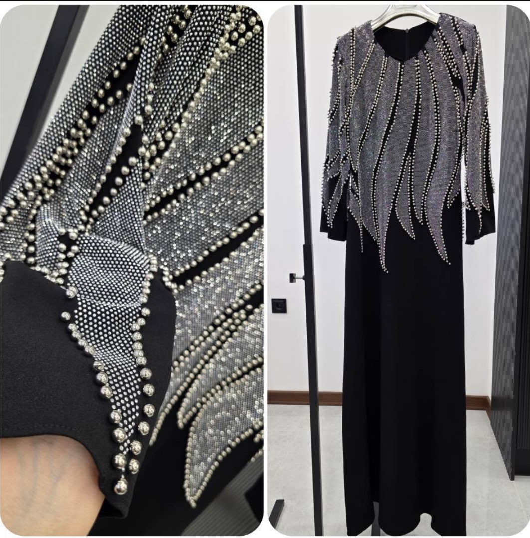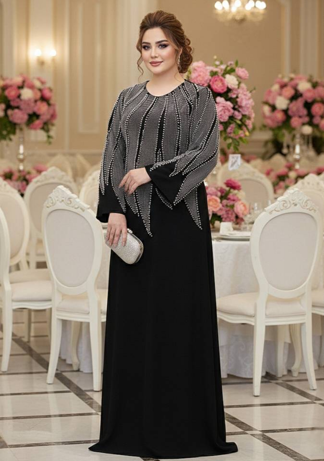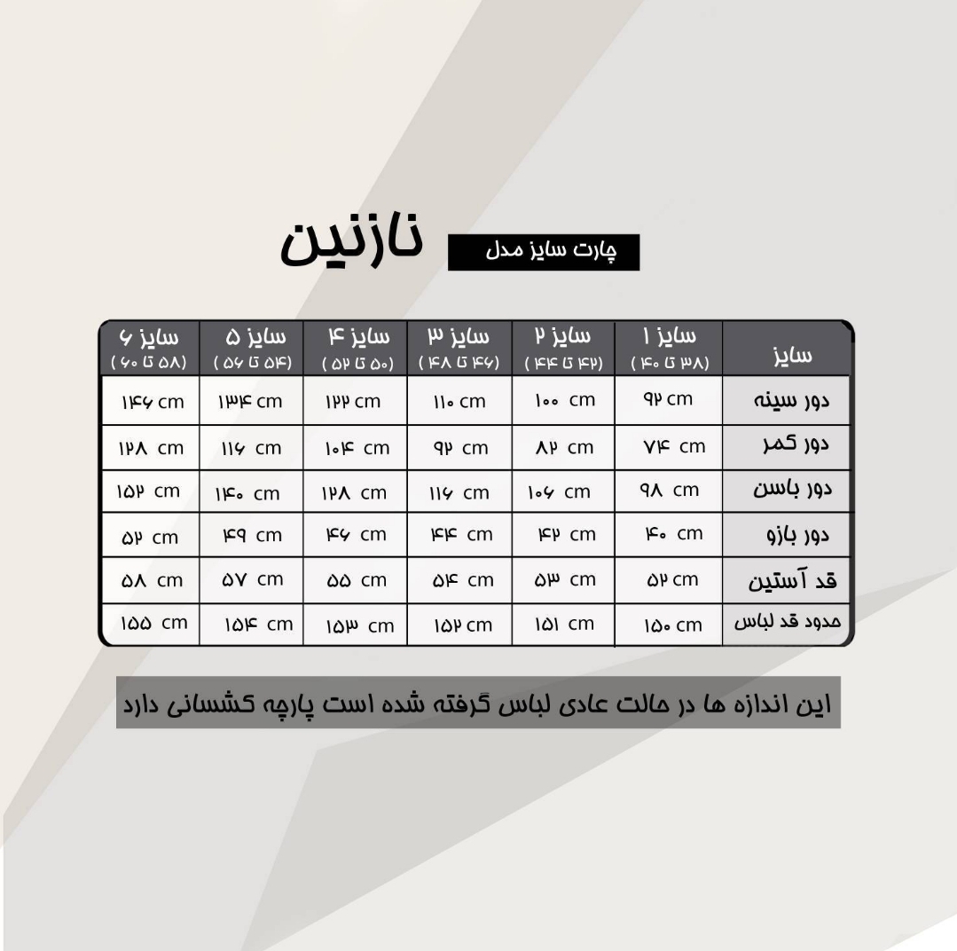 پیراهن مجلسی ماکسی بیگ سایز نازنین.سایزبندی از۵۰تا۶۰ طبق چارت اندازه گیری در تصویر