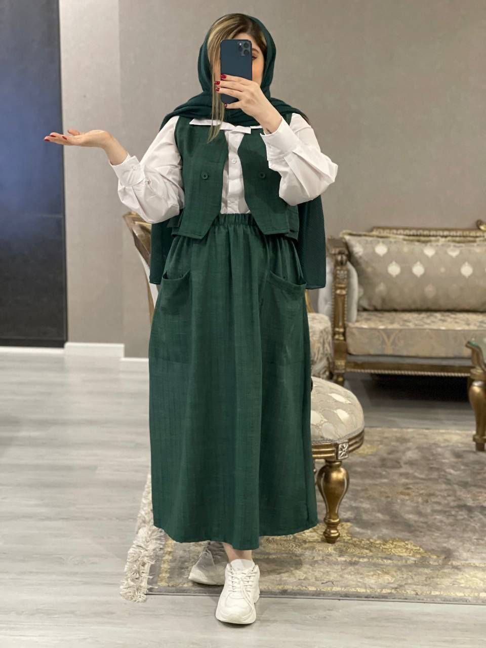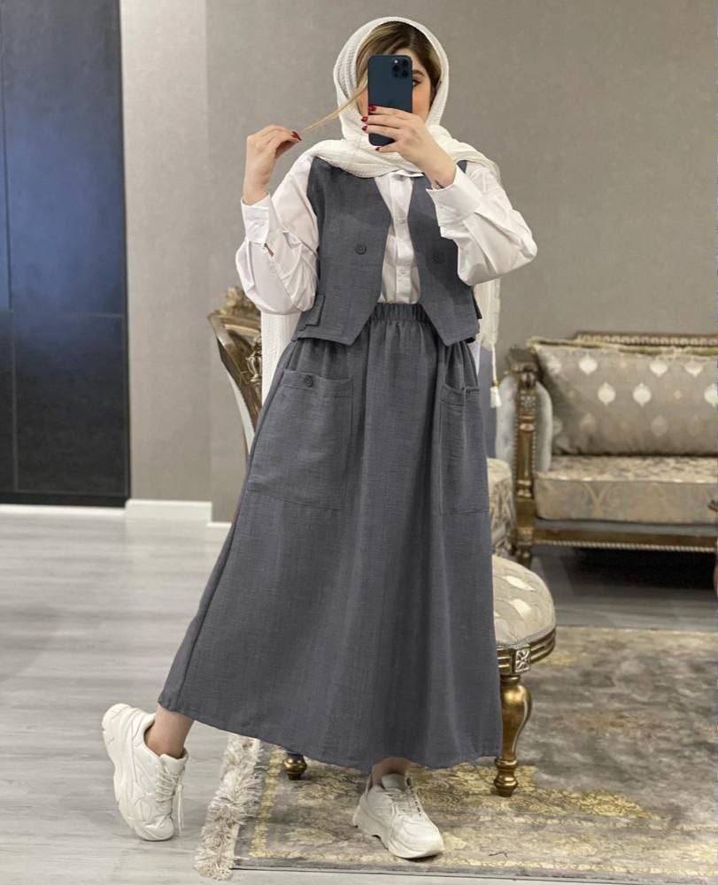 جنس : جلیقه و دامن شانتون شومیز داکرون