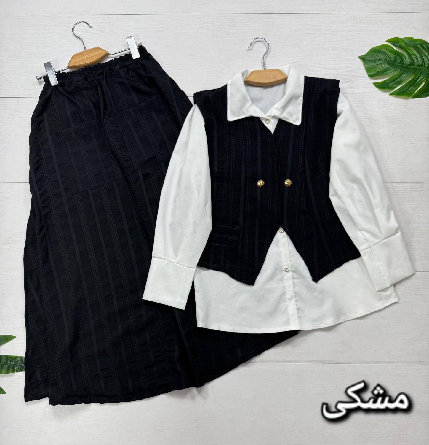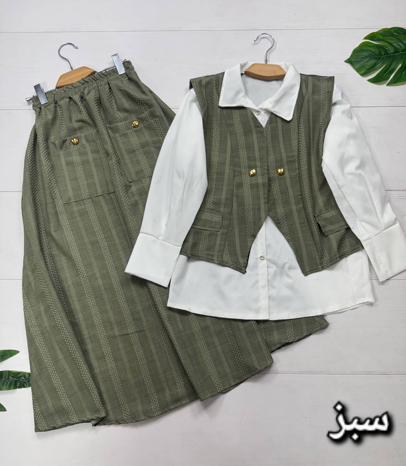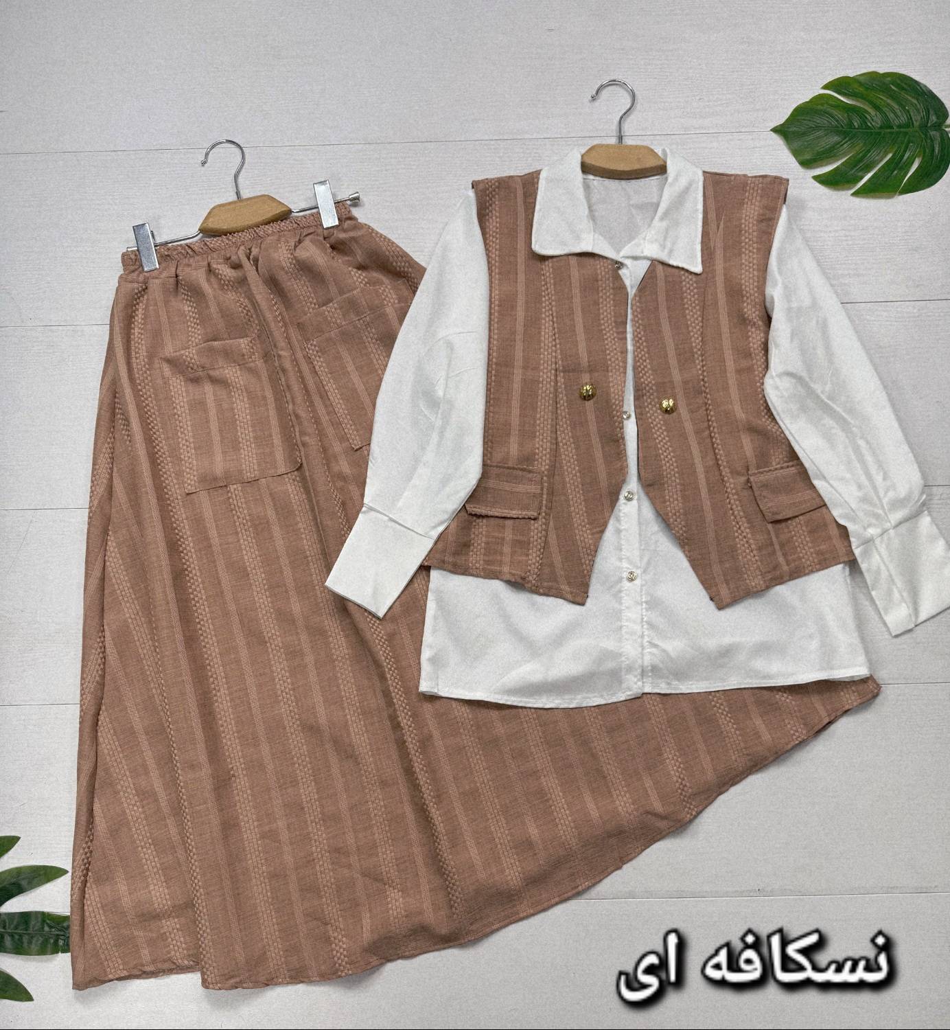 ست ۳تیکه جلیقه دامن و شومیز مرسده فری سایز۳۸تا۴۶ طبق توضیحات در رنگبندی جذاب