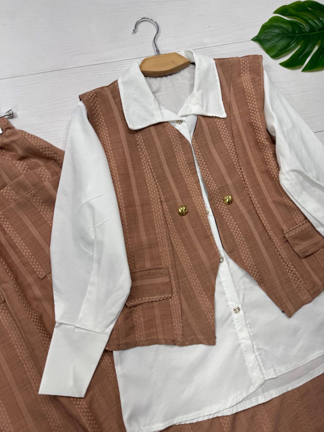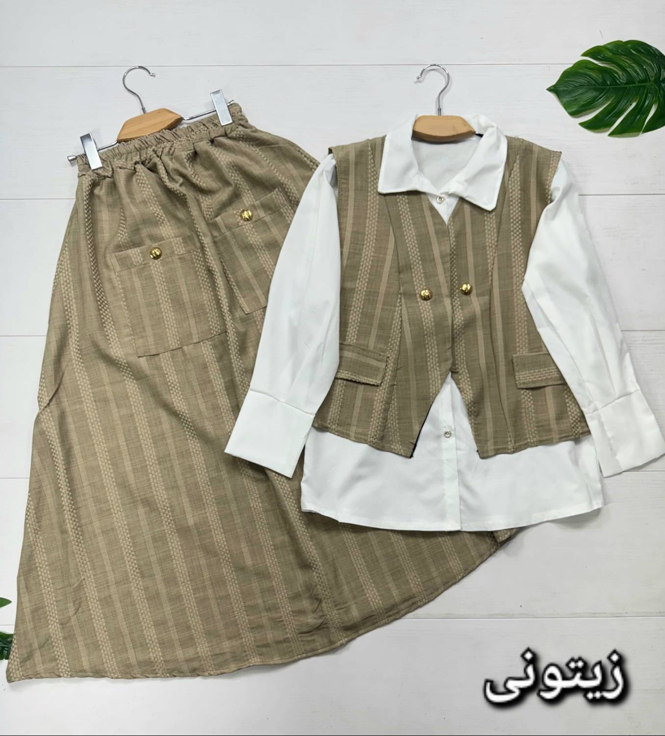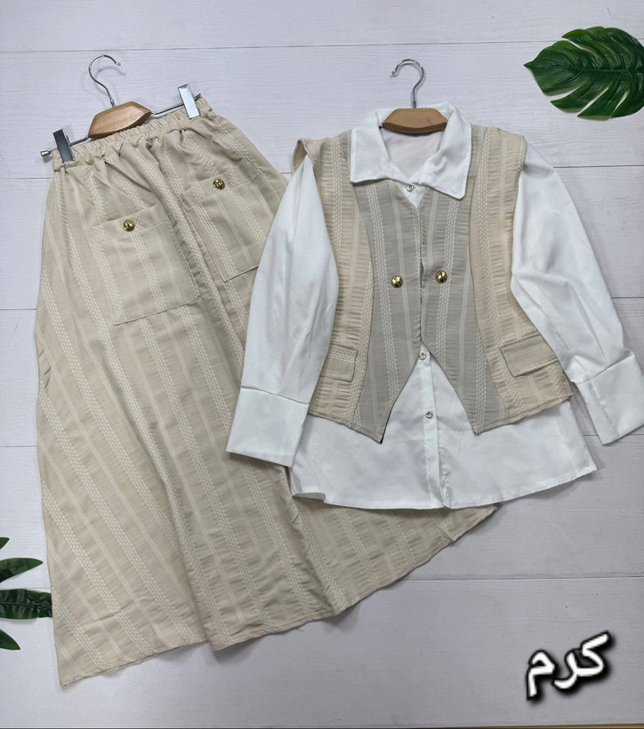 ست ۳تیکه جلیقه دامن و شومیز مرسده فری سایز۳۸تا۴۶ طبق توضیحات در رنگبندی جذاب