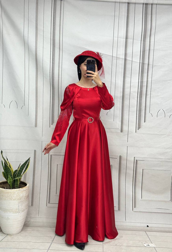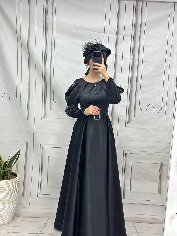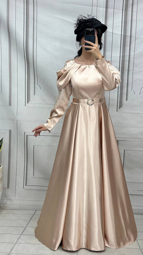 پیراهن مجلسی ماکسی ساتن آستین بلند مرسانا.سایز۳۸تا۴۸