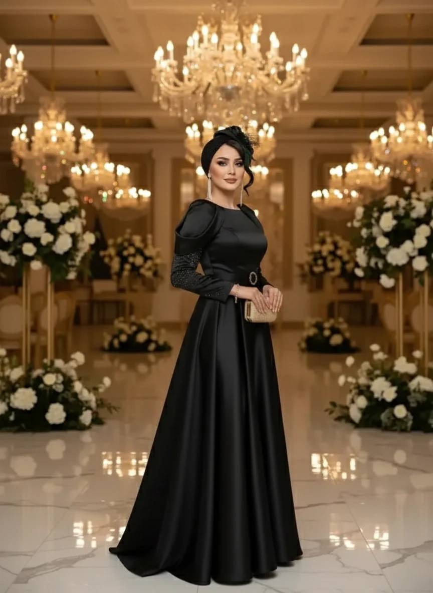 پیراهن مجلسی ماکسی ساتن آستین بلند مرسانا.سایز۳۸تا۴۸