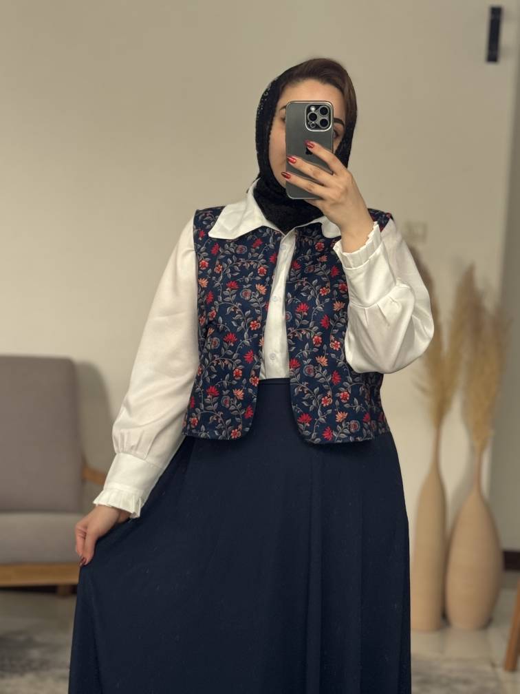 جنس : جلیقه کرپ سانتانا درجه یک شومیز کرپ درجه یک دامن کرپ الیزه درجه یک سبک ریزش دار لطیف