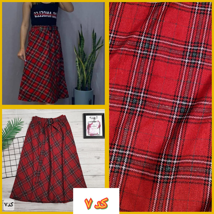 دامن چارخونه پشمی قد 90س در فری سایز ۳۸ تا ۴۶