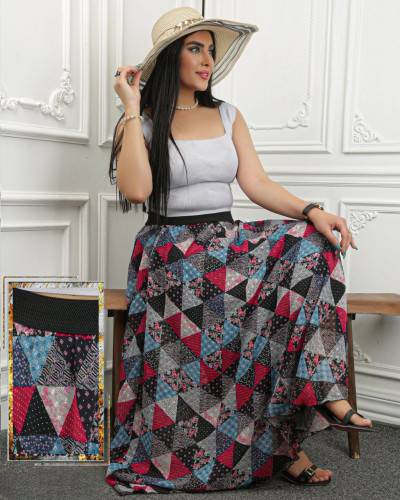 دامن حریر طرحدار هانا فری سایز ۳۸تا۵۲ طبق توضیحات درطرحهای جذاب
