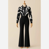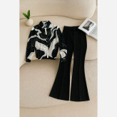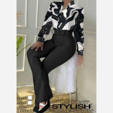 ست سه تیکه شومیز شلوار طرح موج با کمربند