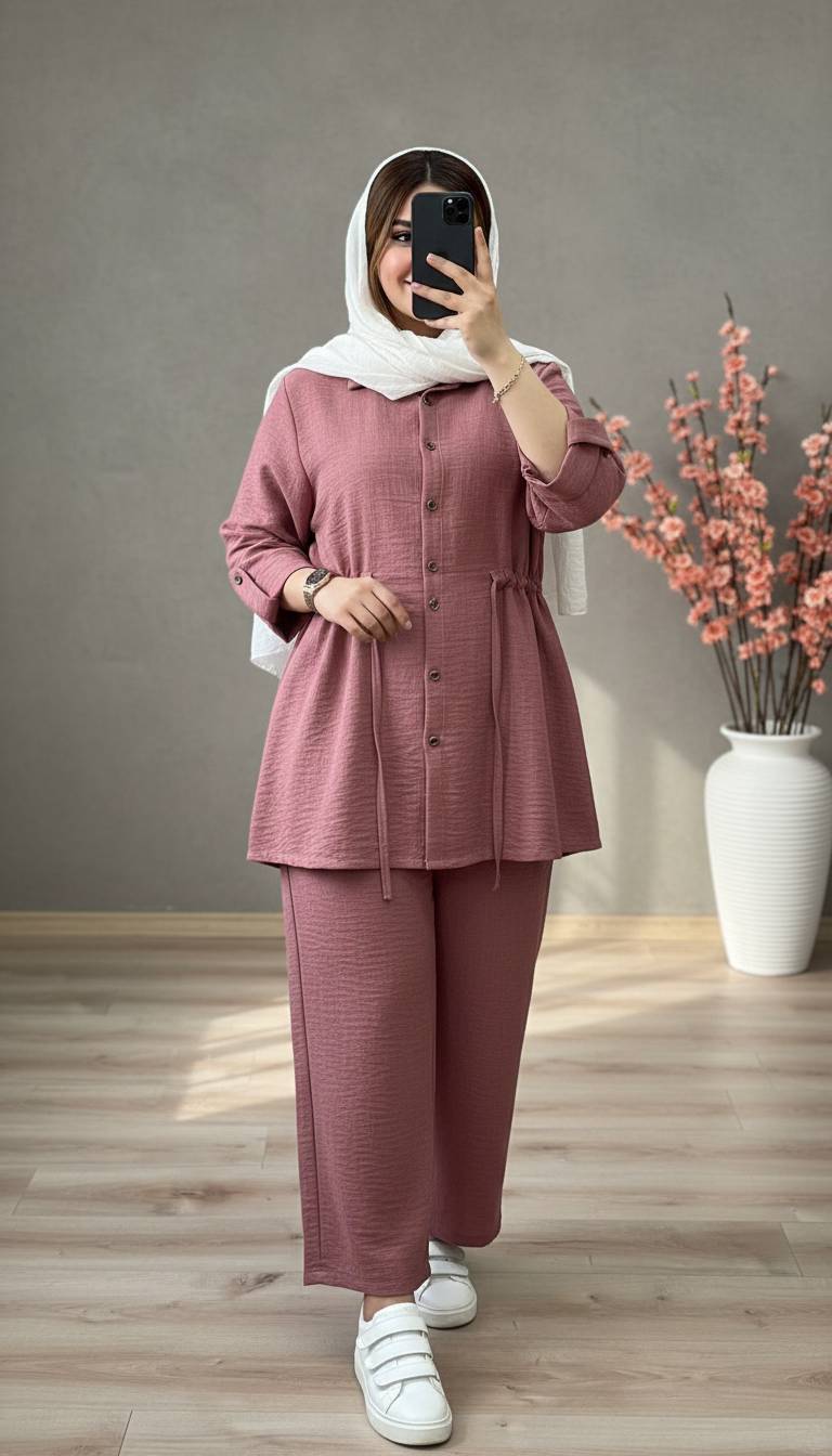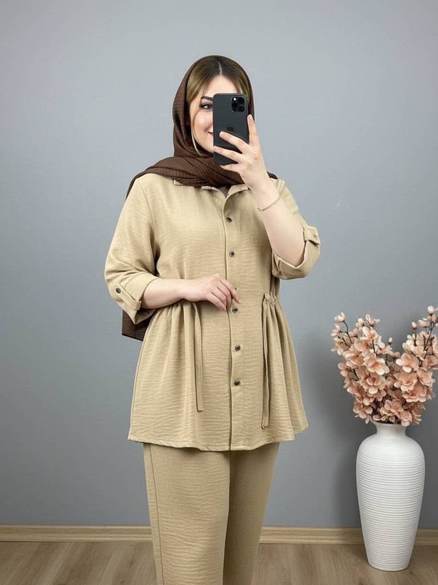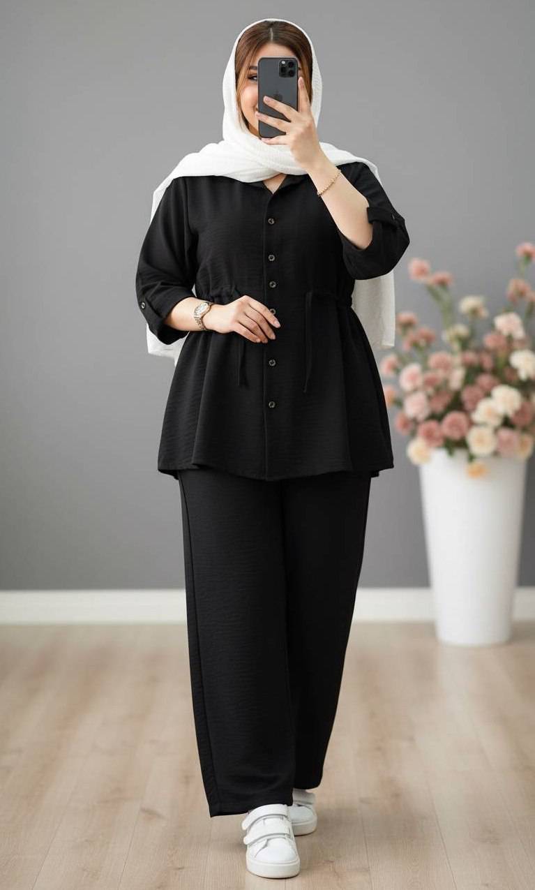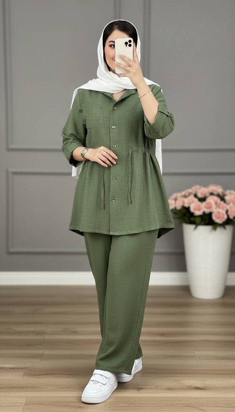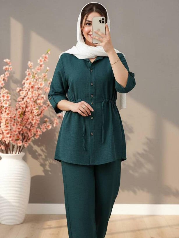 ست شومیز شلوار مانتویی کمر گتدار خنک تابستانه فری سایز ۳۸تا۴۸ طبق توضیحات در رنگبندی متنوع