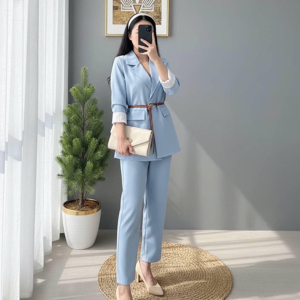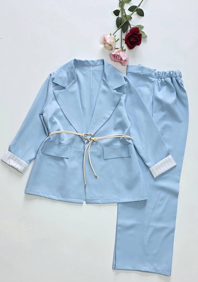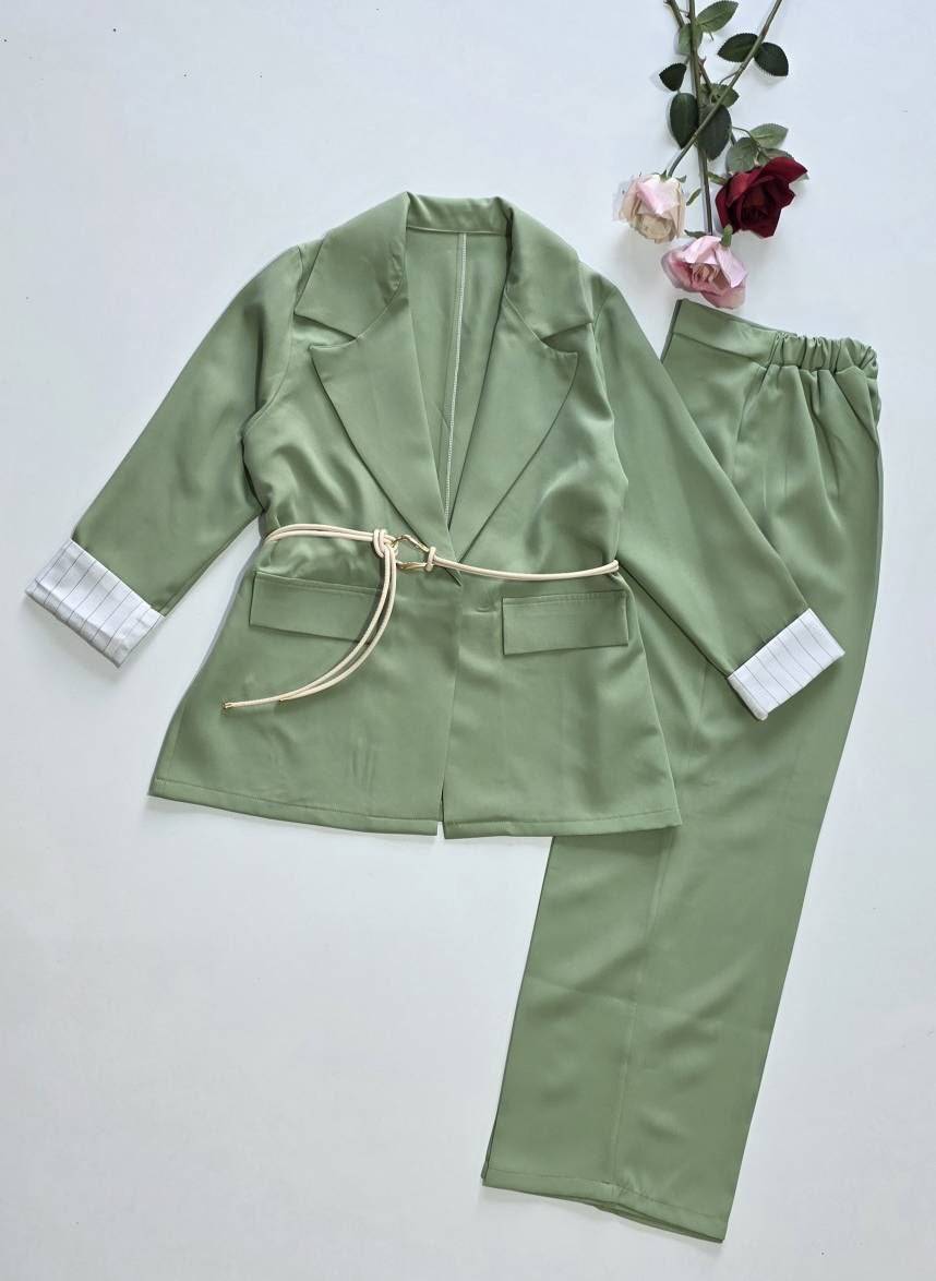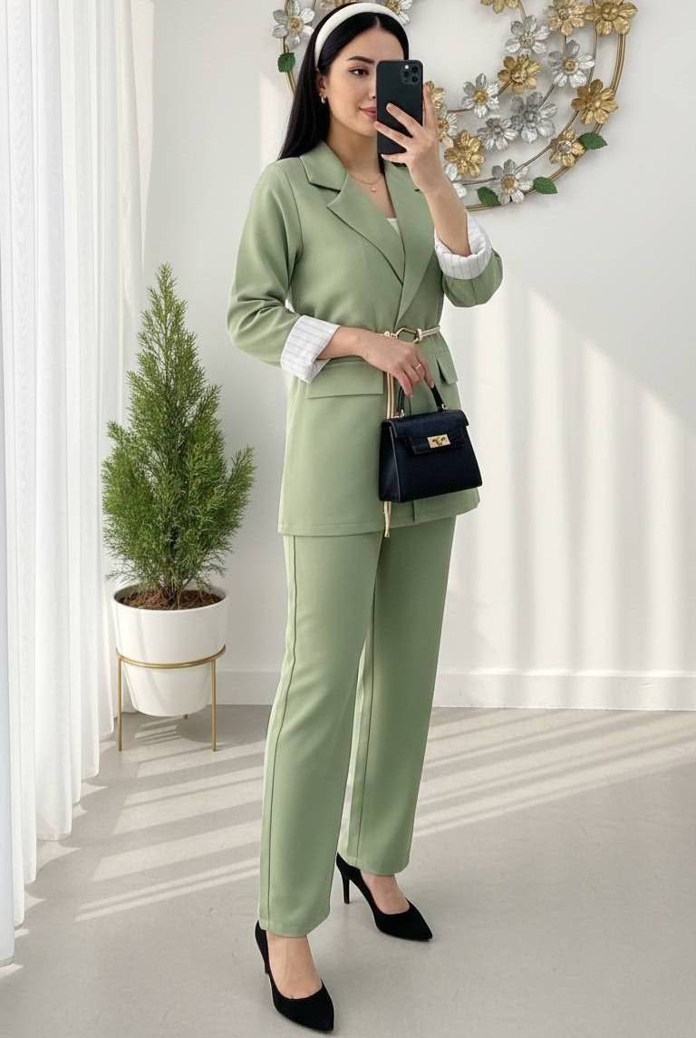 ست ۳ تیکه کت شلوار و کمربند آشیانه.فری سایز تا۴۶طبق توضیحات در۲رنگ جذاب