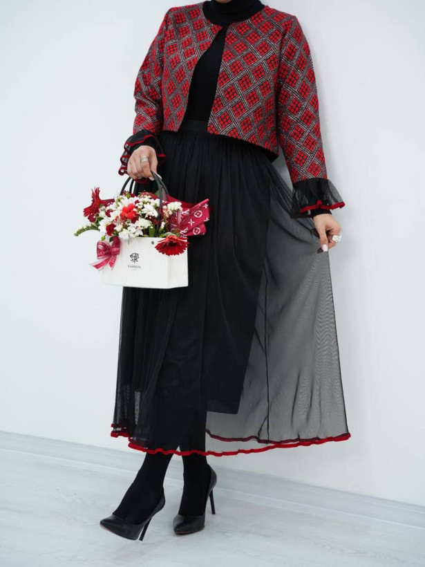 ست کت و دامن یلدایی طرح لوزی