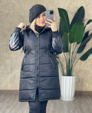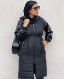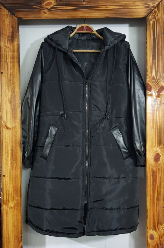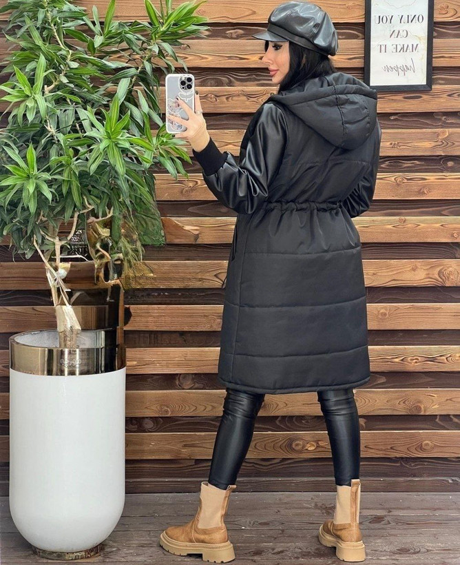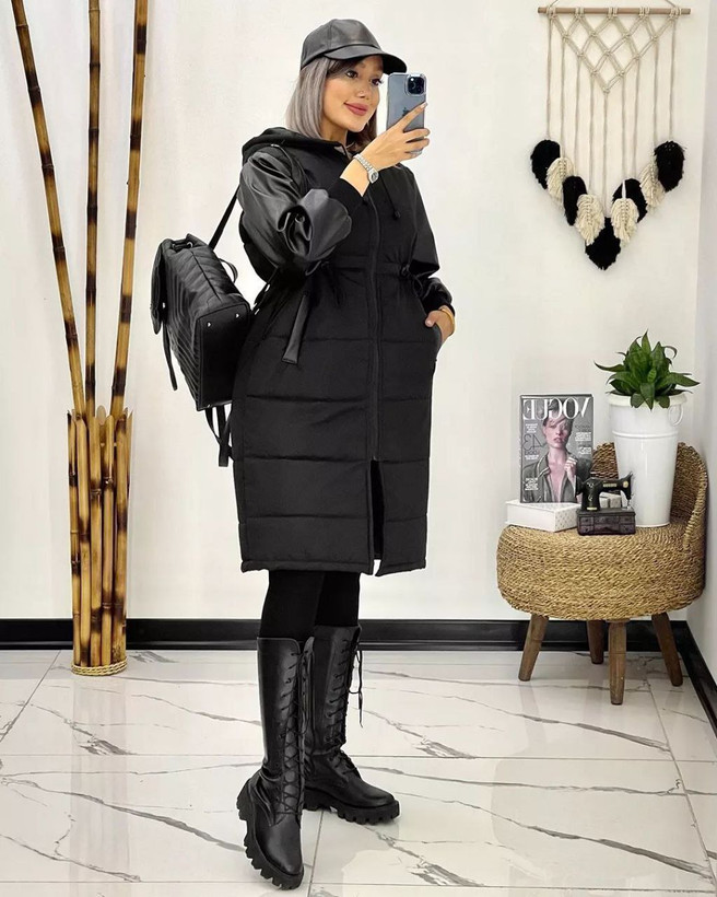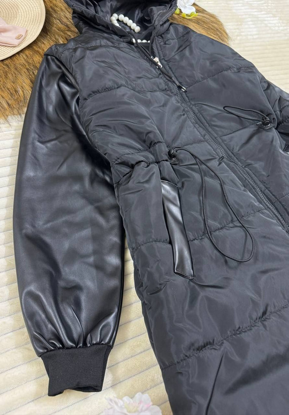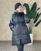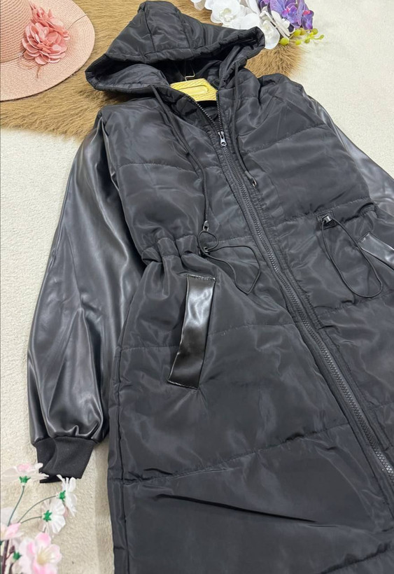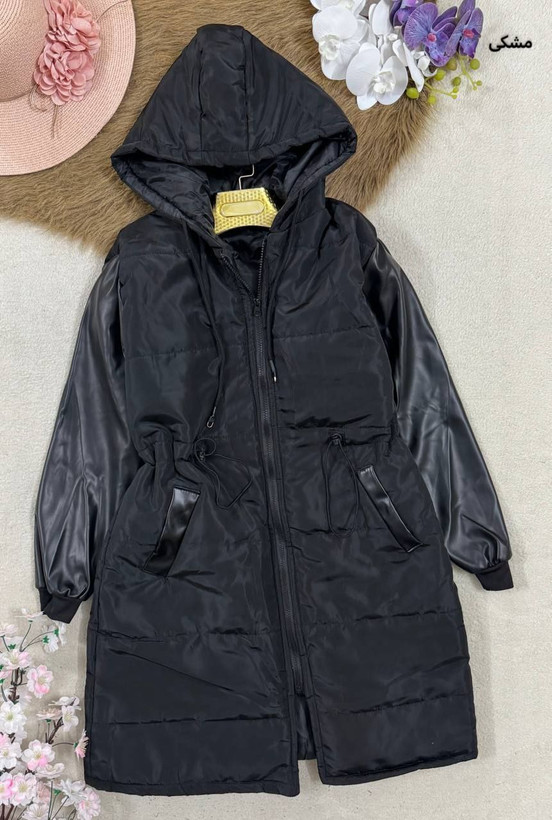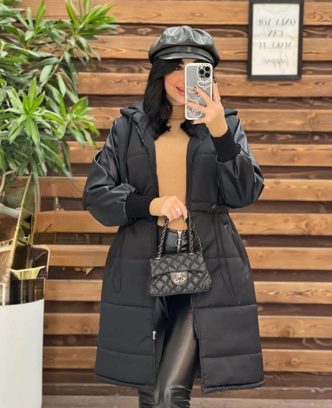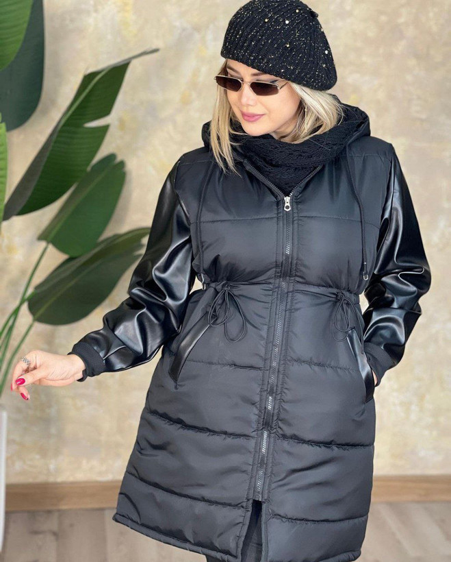کاپشن آستین چرم کمر گتدار کلاهدار فری سایز ۳۸ تا ۴۶