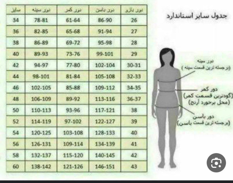 طبق جدول سایز دورسینه چک شود سایز ریز درنظر بگیرید✅