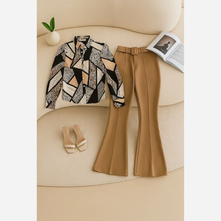 ست سه تیکه شومیز شلوار و کمربند زنانه طرح پلنگی