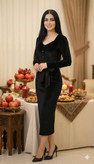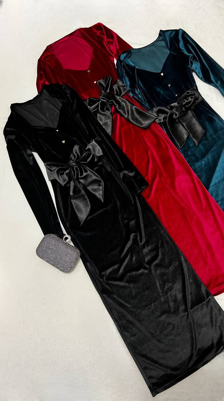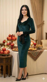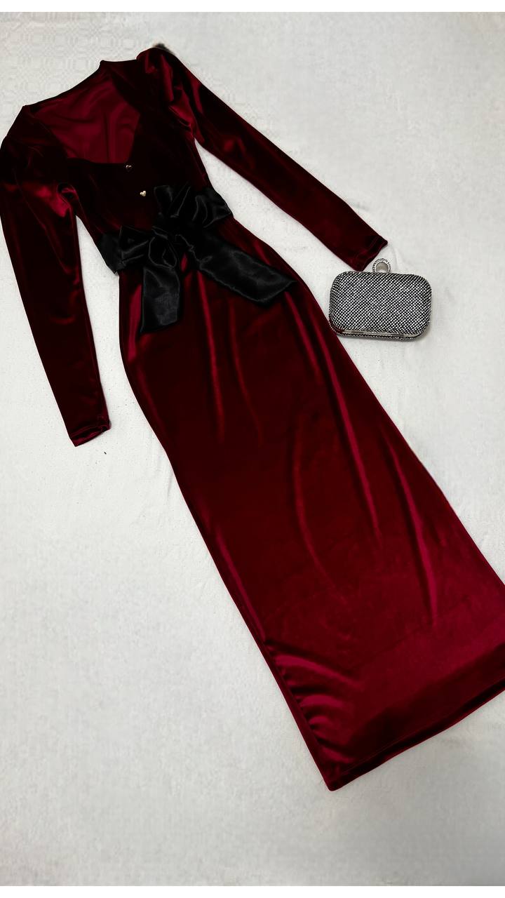 پیراهن مخمل یقه دلبری کمربند ساتن