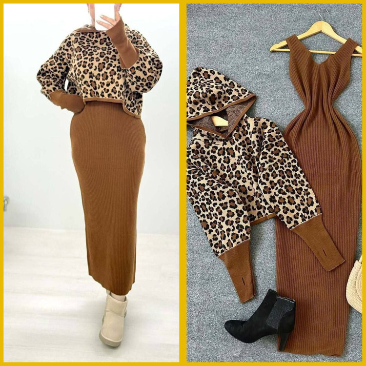 ست سارافون و رویه پلنگی کلاهدار فری سایز ۳۶تا۴۴