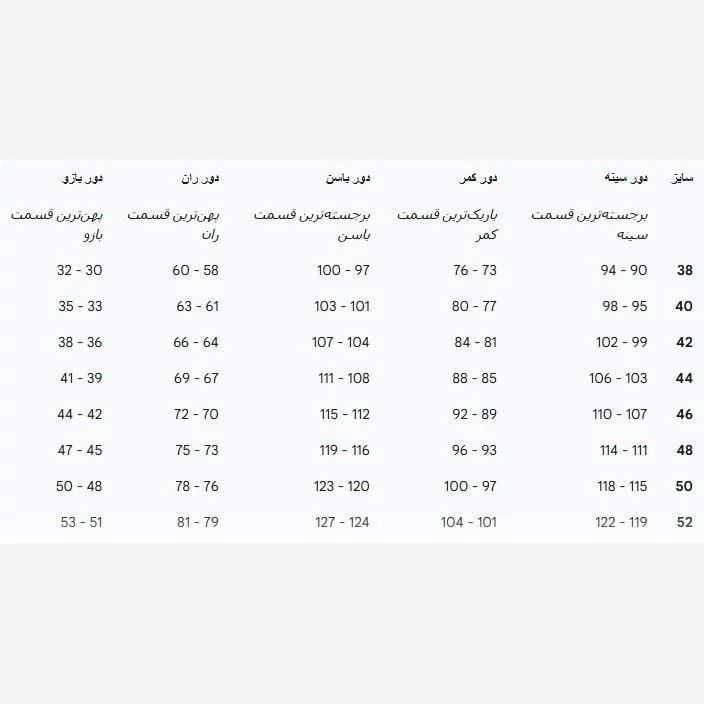 💥سایزبندی : 38 تا 48 طبق جدول رُشنا