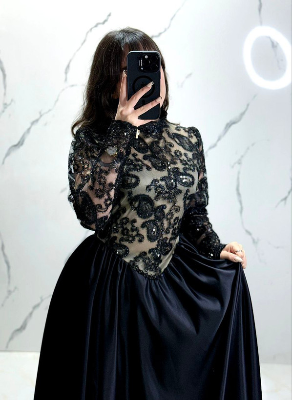 پیراهن مجلسی ترمه (تور و ساتن) سایزبندی ۴۰ تا ۵۰