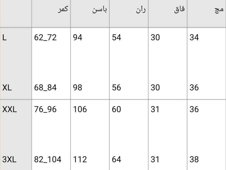 سایز ها : 3XL, L, XL, XXL طبق جدول سایز در تصاویر