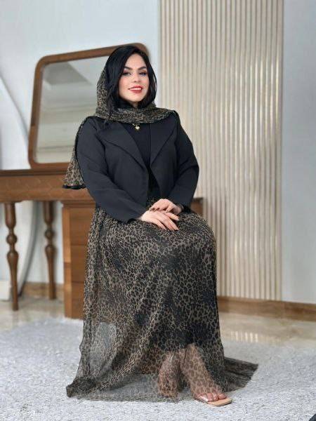 سه تیکه کت دامن شال پلنگی فری سایز ۳۸تا۴۶