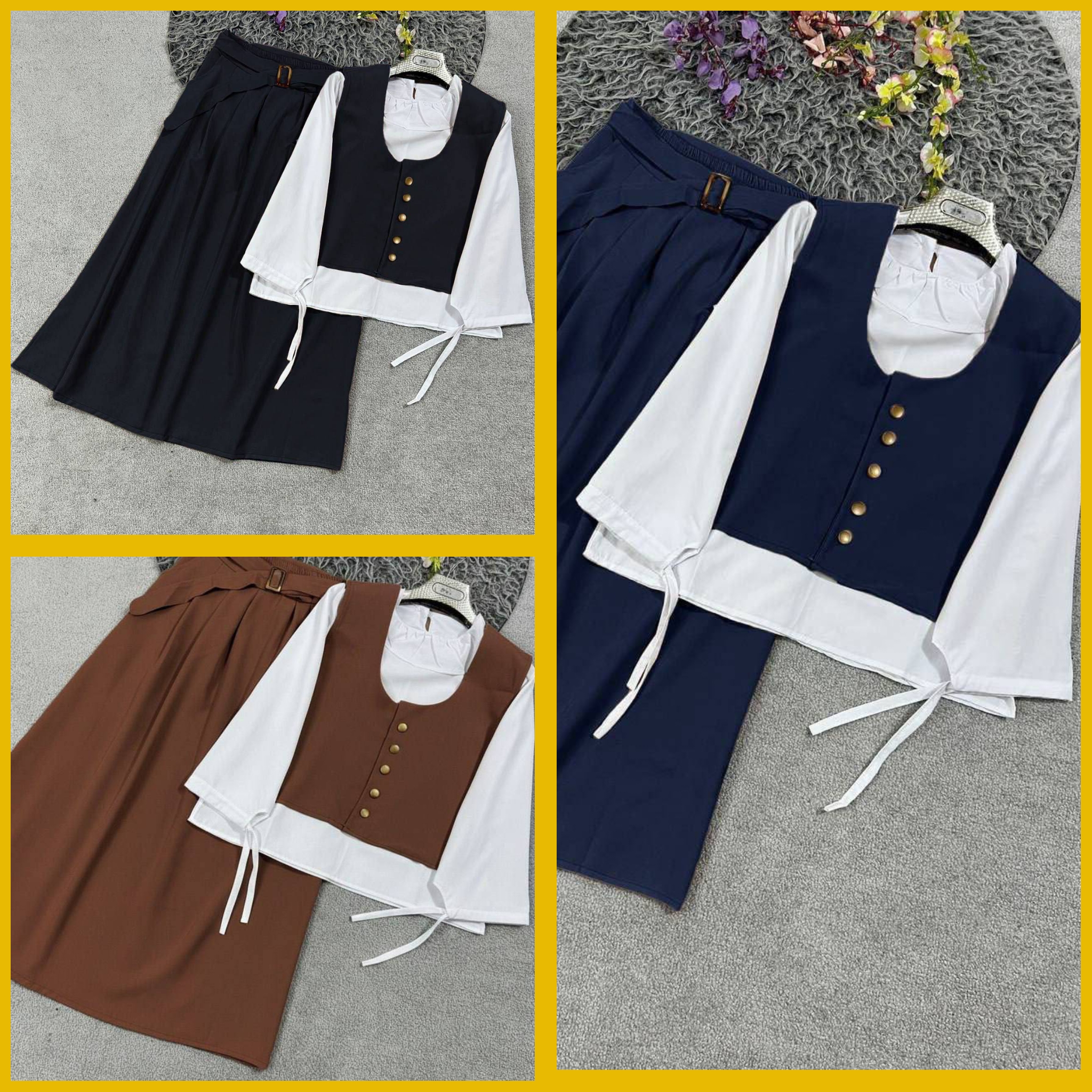چهار تیکه شامل کمربند+وست+شومیز+دامن