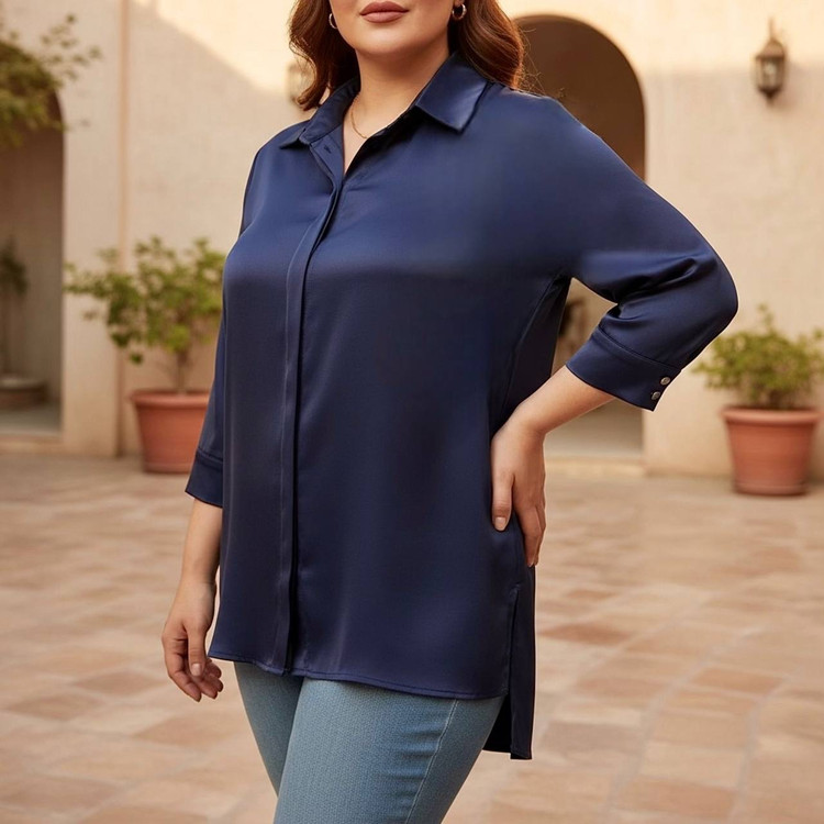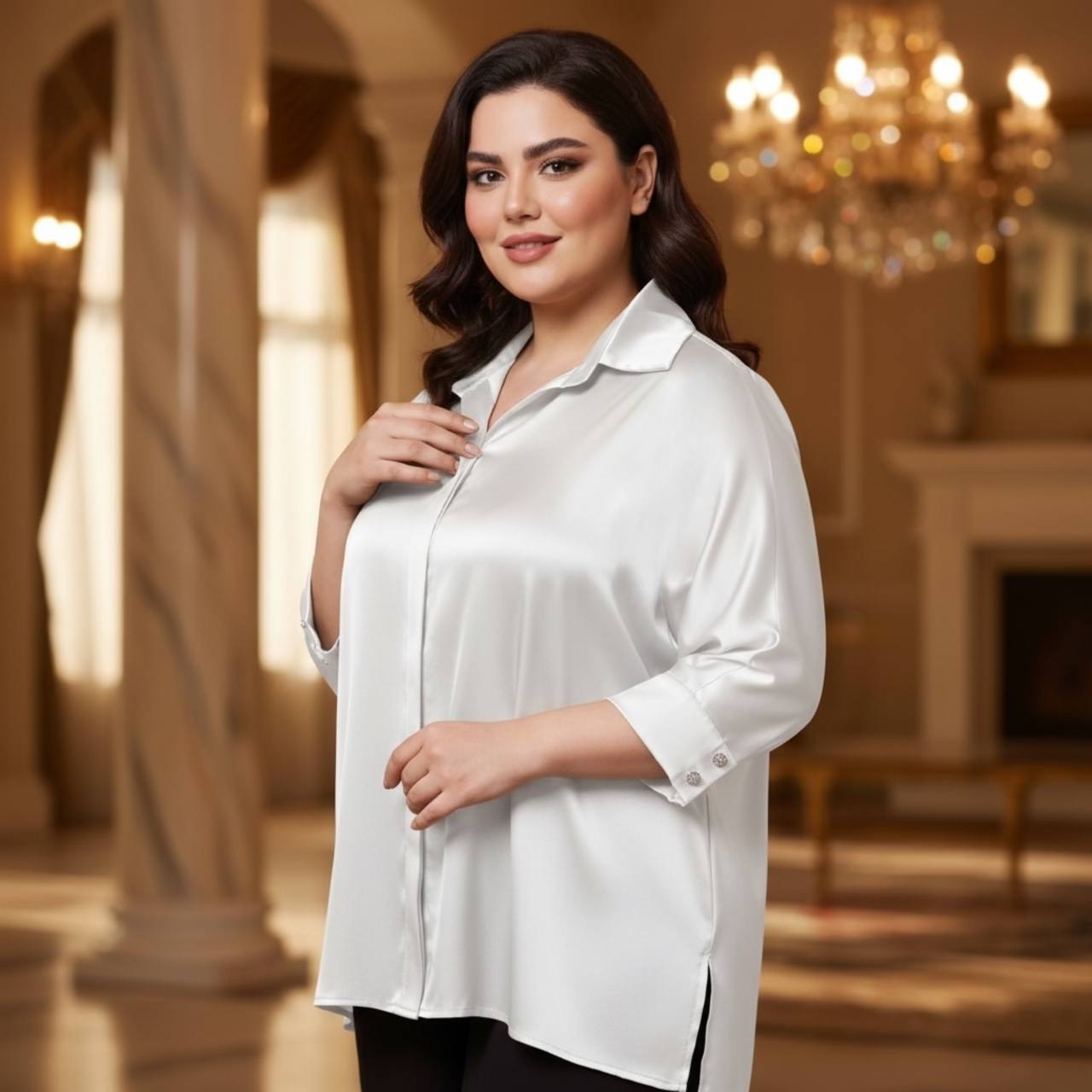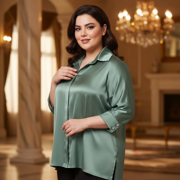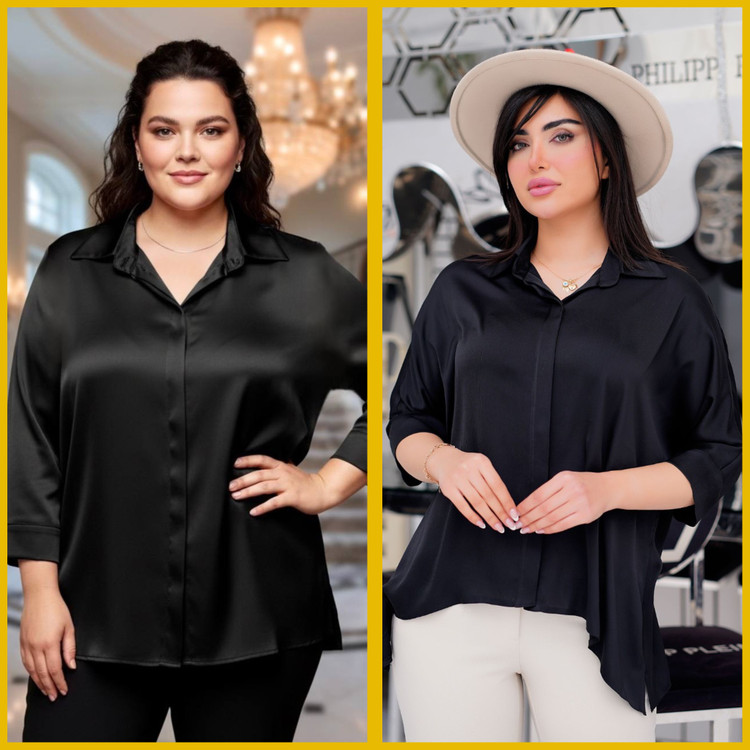شومیز مجلسی ساتن قواره دار اسمال تا بیگ سایز ۴۲تا۵۲ بیسیک