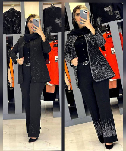 ست کت شلوار مزونی جواهردوزی.سایزبندی از۳۸تا۵۲ طبق توضیحات در۲رنگ